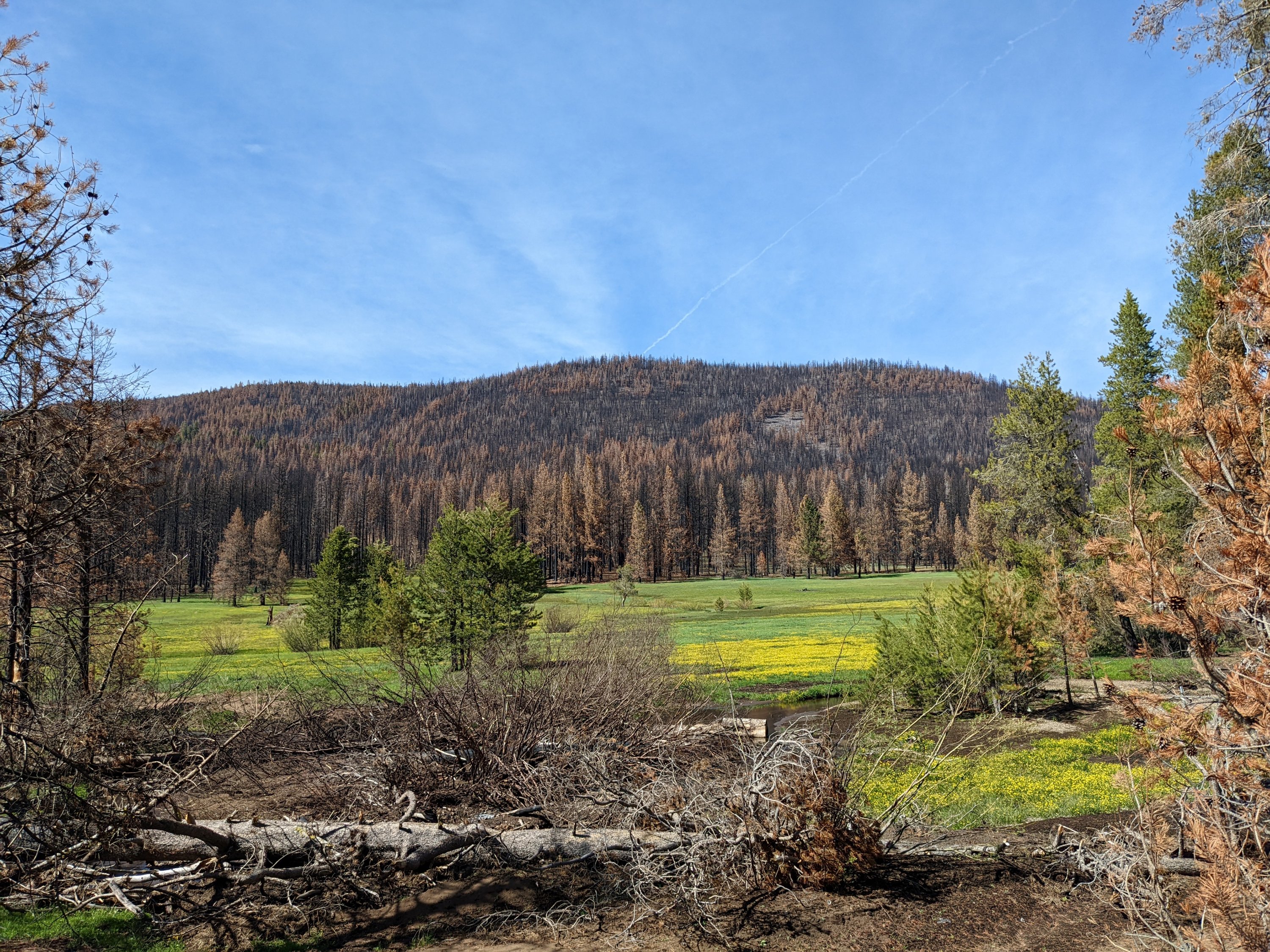 I had attempted to get thru to Taylorsville just a few weeks prior and was thwarted by a fallen log in the road, and me without a saw. Dixie Fire had gone thru this area hot and heavy – as we were intimately aware, feeling the heat from it at the Castle while we desperately tried to create some sorry excuse for defensible space…