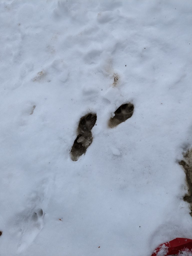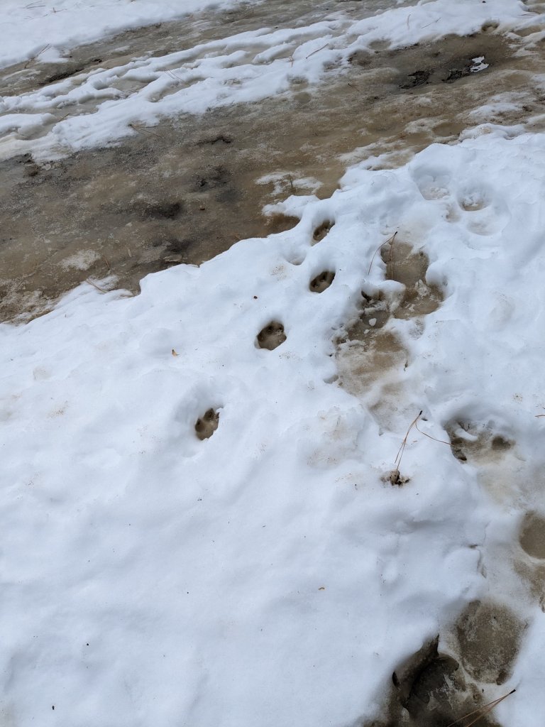 One morning in Jan 2023, Lynda saw unfamiliar, big, almost dog-like paw prints in the snow.